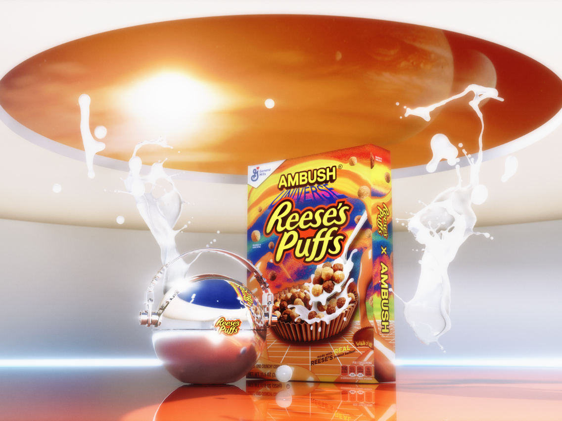 MINNEAPOLIS, MN — REESE’S PUFFS is taking fans beyond the cereal bowl and reimagining the future of breakfast — in the metaverse, and in real life — in collaboration with contemporary designer, Yoon Ahn and her brand, AMBUSH. The partnership, which first debuted last month with a designed REESE’S PUFFS cereal box, is now expanding into an immersive breakfast experience created exclusively for REESE’S PUFFS fans.